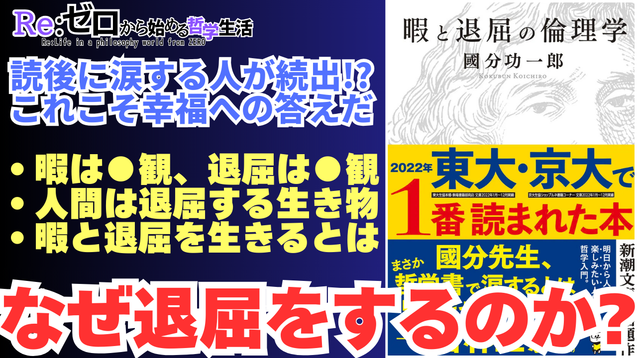 今回は、「暇な時にどのように生きるのか?」「退屈とどのように向き合うのか?」―このような問いをみなさんと一緒に考えてみたいと思います。豊かな社会に生きる私たちはどこか「生きているという感覚の欠如」、「生きていることの意味の不在」や「何もすることがないという欠落感」を感じています。それが「暇と退屈の倫理学」を考えるきっかけとなるはずです。ぜひ、動画を最後まで見て頂き驚愕の結論をあなたの手で受け止めてほしいと思います。