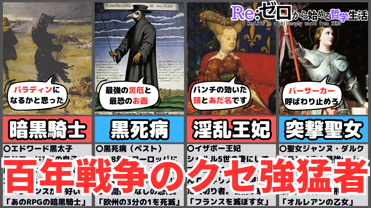 そこで、今回は百年戦争の概要とヨーロッパ諸国への影響について詳しく解説します。暗黒時代といわれた中世から啓蒙時代といわれる近代への転換点こそが百年戦争なのです。 百年戦争の全体像を把握することができれば複雑なイギリスとフランスの関係性やキリスト教カトリック教会の中世ヨーロッパ世界における影響、そして中世から近代へどのように社会の価値観が変化したのかを理解することができます。内容がわかりやすかったと感じた時にはぜひ高評価&チャンネル登録をお願いします。