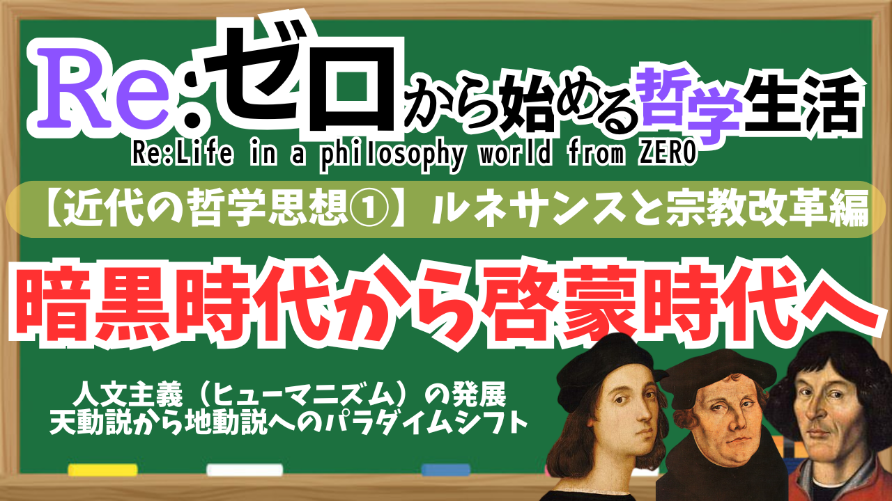 今回は「Re:ゼロから始める哲学生活」近代思想①ルネサンスと宗教改革編を解説します。参考文献は『哲学と宗教全史』(著者:出口治明さん)です。